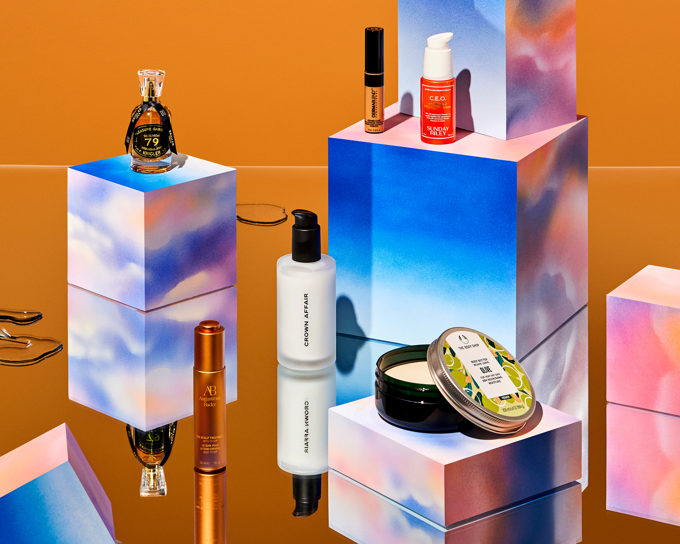 Pastel-toned sets, custom pedestals, and nostalgic props bring to life the collection’s three signature scents—Blue Jean Baby, Dreamlight, and Gloss Pop.