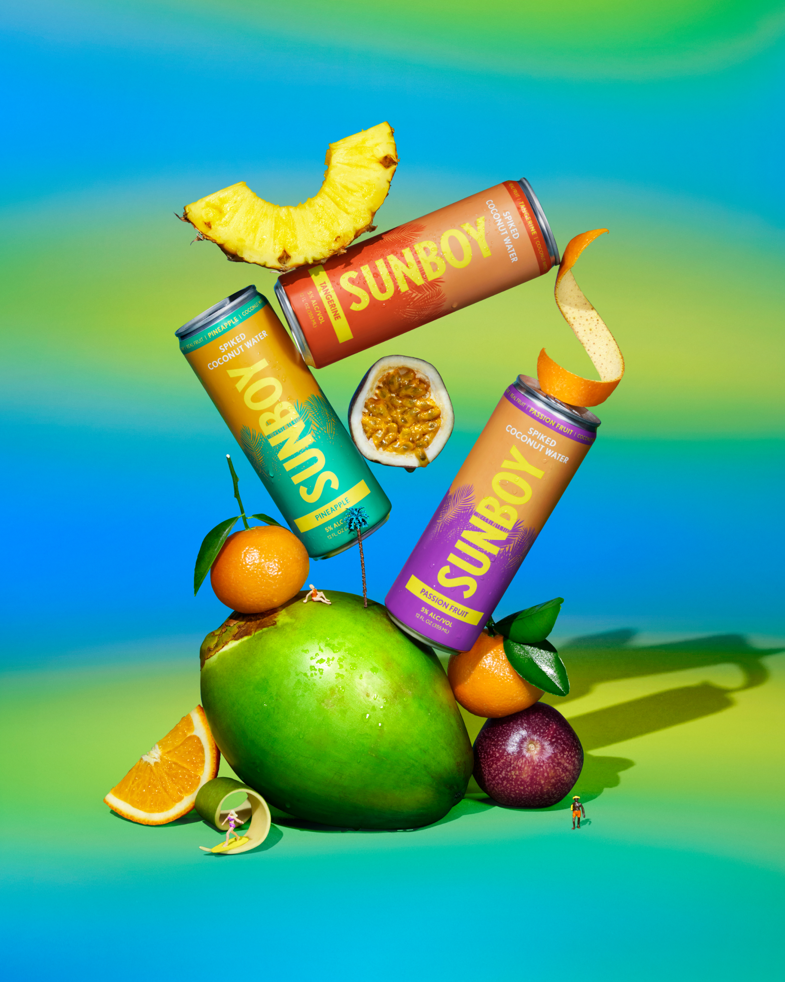 Juicy summertime vignettes for SUNBOY—the world’s first spiked coconut water—launching their 2023 expansion into new markets.